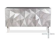 This cabinet's classic shape and simple metal legs pair with unique marquetry providing an angular twist that fits into traditional, transitional or modern settings. The Precision Prism is part of the Brown Davis Interiors Collection.